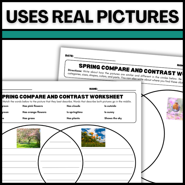 Spring Compare & Contrast Worksheets With Real Pictures For Speech Therapy, SPED, & ESL