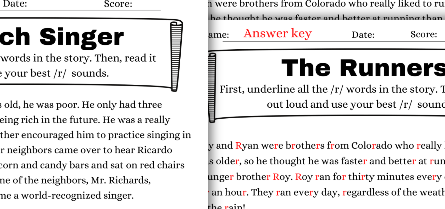 Many students are more consistent with their R sound when reading aloud. Seeing the letter R on the page serves as a helpful visual reminder to position their tongue correctly for accurate production. While there are many free R stories available online, most tend to be fairly short and typically include only 20 to 30 R words, which can limit practice opportunities.